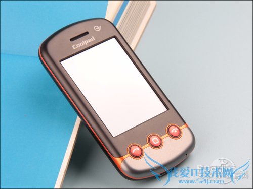 机身正面,2.6寸的TFT显示屏占据了主要位置。这块屏幕的分辨率为240×320像素,屏幕色彩为26万色,显示效果还是不错的。屏幕上面是长条状的听筒和Coolpad的标志,天翼的logo则表明了其电信定制机的身份。