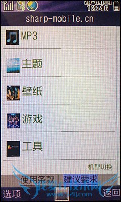 七、简单易用的操作界面 在操作上,夏普SH6320cC采用了MTK操作平台。由于夏普在日本的那套操作平台对于国内的网络多少会有点水土不服(许多功能根本实现不了),所以采用MTK平台多少有点事无奈之举。但在界面上国内的夏普手机借鉴了日本的界面元素,同样左软件是开启短信、右软件开启网页浏览器,而中间确认键同样是进入菜单。在菜单图方面也经过夏普的重新设计,让整个界面与外表趋于协调。