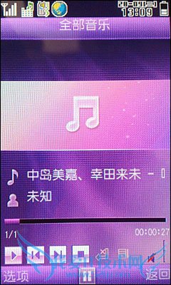 十一、实用工具 有了出色的外表当然也要有称得上的多媒体播放能力。打开夏普SH6320C评的音乐播放器,可以看到整个界面非常的搭,没有过多的娇做。在功能上也非常简单支持单曲重复、随机播放,还有音乐会、淋浴、教堂、歌剧厅的多种音效选择。最重要的是在播放音乐时外屏的LED灯阵会不时闪过音乐的符号。