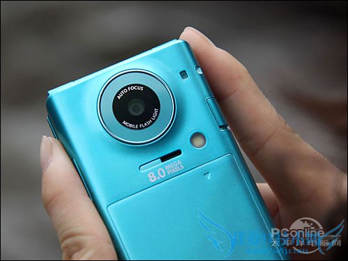 在色彩选择上,夏普SH6320C有亮蓝和粉红两种颜色可供选择。对于“颜色控”来说绝对是个不小的诱惑。这次来到评测室的为亮蓝色版本,在造型上夏普SH6320C与夏普SH6310c有着异曲同工之妙。但夏普SH6320C更显优雅,外翻盖上的镜面设计让既可以充当临时镜子也让夏普SH6320C赚足了眼球。不需要复杂的线条,简洁硬朗的就能勾勒出夏普SH6320C那急剧诱人的机身。 2、800万像素摄像头