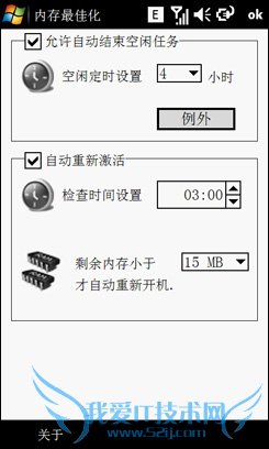 ACER F900的提供了一个非常有用的程序,这便是内存最佳化工具,其可以自动结束在后台的空闲任务,用户可以自行定义空闲时间。而当夜晚指定的时间,该程序还会侦测内存状况,如果内存状况小于设定值,程序便会自动重新启动手机,保证手机不会因为内存小而产生死机现象。F900内置的任务管理器能够显示当前剩余空间,用户还能够选择性的结束不需要的后台程序。
