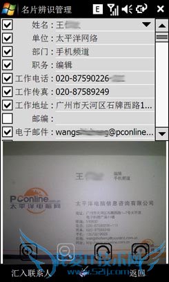 ACER F900内置的名片识别功能非常强悍,首先其为了增加拍摄名片的清晰度提供了闪光灯的支持,这样用户即便是在昏暗的环境中同样能够进行名片识别。横向拍摄完名片之后,还可以进行放大图片查看拍摄是否清晰,接着选择好相关的语言便可以进行辨识了,并且还支持繁体和简体的相互转换。由于拍摄清晰,ACER F900的识别准确度非常高,识别准确度在95%以上,经过多张名片测试,测试的过程其还曾出现过完全识别正确的情况。