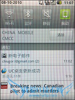 六、酷毕碰上银河擦出Android 2.1的火花 三星GT-i5500相比起酷毕S3650C来说最大的改变毫无疑问是来自其内涵的改变,搭载了全新的Android OS 2.1操作系统版本,让三星GT-i5500摇身一变成为了智能机。新增最大9分屏、动态壁纸、全新的拨号界面。CPU达到600MHz能胜任日常的操作,没有出现画面延滞的情况。