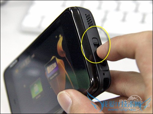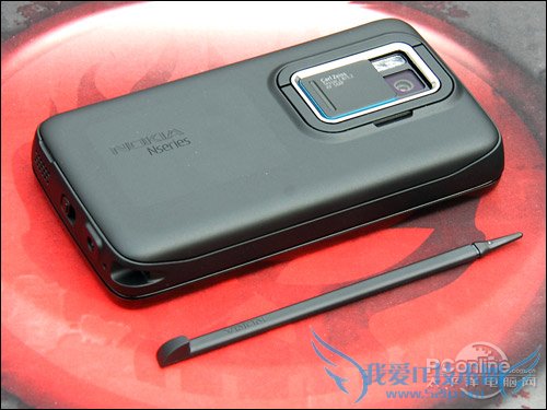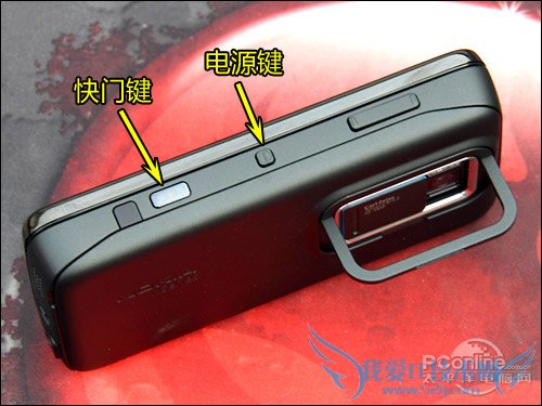 侧面,N900安置了电源键、快门键、音量键,从这个角度可以看到N900的支架,这个倒没什么新鲜的,在N96也出现过。