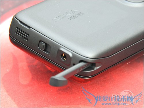 诺基亚N97的手写笔是以挂绳的形式存在,很多用户都抱怨不够方便,这次N900终于将手写笔回归到机身了,另外这个位置N900还安置了锁定键、3.5mm耳机接口、话筒,另外立体声扬声器其中一边也放在这里。