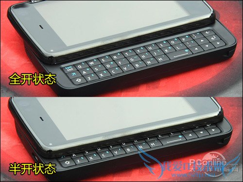 诺基亚这次抛弃了N97的侧滑方式,N900的屏幕并不能向上掀起,同时滑盖不是半自动的,从头到尾都是手动推开,所以N900滑动的时候,盖子可以在“中途”停下来。