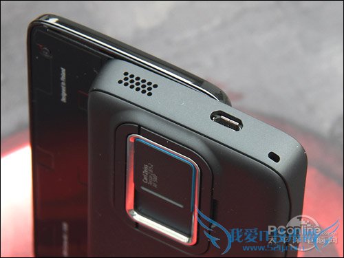 翻到顶部可以看到另一个扬声器,另外还有microUSB数据线接口,另外N900充电也是通过这个接口。