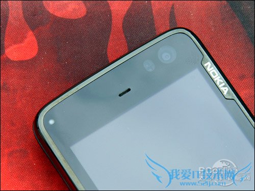 细节设计 诺基亚N900屏幕的暗藏3G视频通话摄像头、距离感应器,通话的时候脸部靠近屏幕,灯光会自动关闭,防止误操作。