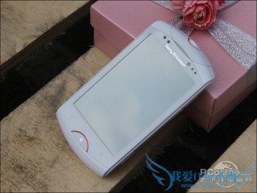 机身细节 索尼爱立信WT19i机身正面是一块3.2英寸的电容屏,屏幕上方依次是光线感应器、距离感应器、前置摄像头和信号指示灯。上下两条弧线交错形成了WT19i的听筒,显得十分动感。