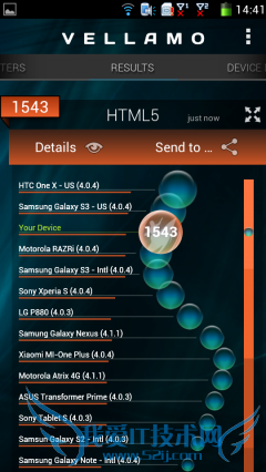 在Vellamo测试项目中,酷派7296的MTML5分数为1543分,在机型对比中,也达到了四核平均水平。
