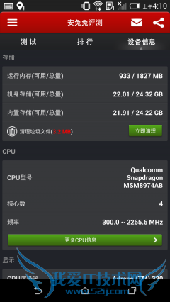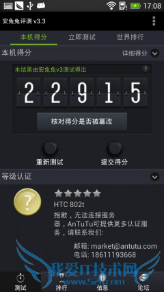 超级兔子系统评测AnTuTu Benchmark是一个专门给Android系统的手机、平板电脑硬件跑分的软件,它能一键运行完整测试项目,通过内存性能、CPU整数性能,CPU浮点性能、2D、3D绘图性能、数据库I/O、SD卡读、写速度等多项性能测试,并对手机的整体和单项硬件性能做出评分。同时上传分数并查看该设备在世界的排名。