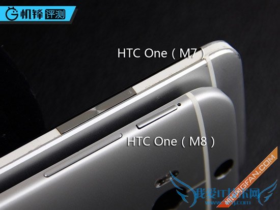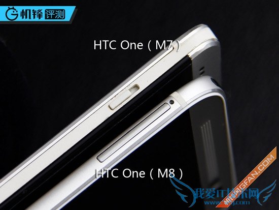 ▲M7的机身顶部比M8多了3.5mm耳机接口,但电源键的位置基本一致。