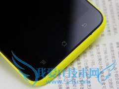 在背部外壳上该机采用了磨砂聚碳酸酯材质,同时丝绒质感的涂层技术也该机手感十足。据悉,该机在上市后将拥有红、黄、黑、绿四种颜色供用户选择,而今天我们拿来评测的就是其中的黄色款。同时该机的后盖也采用了可拆卸设计,借此来让用户可自行更换电池。