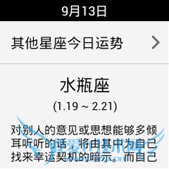主页向上滑动一次为黄历,向下滑动两次为星座运势。