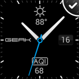 第一次接触智能手表,对于它能实现的功能还比较好奇,上手之后特意研究了一下。GEAK手表外观设计简单,黑色表盘、黑色腕带配有金属表扣。机身整体材质采用的是工程塑料,稍显廉价,但整体外观还算不错,佩戴也较为舒适。
