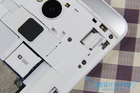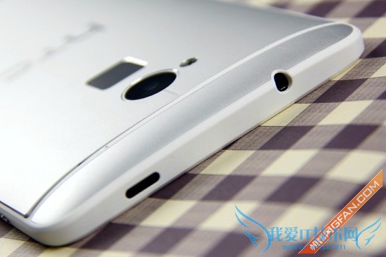 机身四周的格局:底部是3.5毫米耳机孔、红外线输出口;底部是Micro USB数据线接口;左侧是后盖开启金属卡扣;右侧是音量调节键、电源锁屏键。