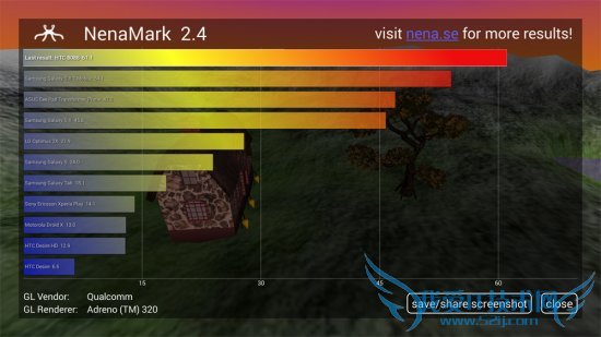 NeanMark2测试:是一款用于Android设备的硬件加速基准测试程序,通过演示一款实时渲染的画面来对手机的图形能力进行测试,包括反射、动态阴影、曲面参数、复杂光线模式等内容,需要Android 2.0以上系统和OpenGL ES 2.0支持。