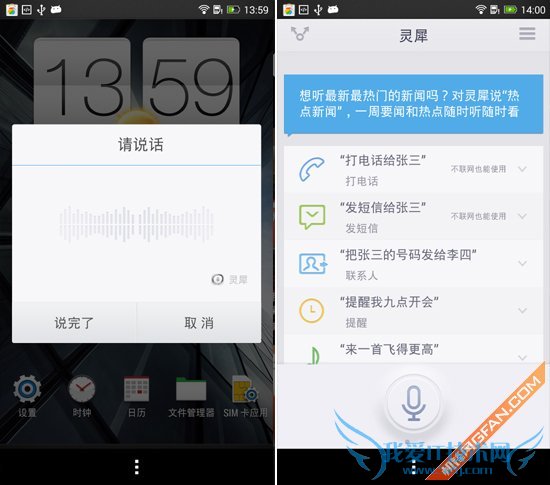 语音助手:长按HTC One max上的主页按键,即可调出系统内置的语音助手“灵犀”,它能够帮助消费者完成语音打电话、发短信、查找联系人、事件提醒等功能。