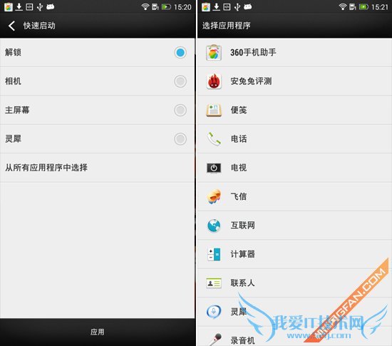 在完成指纹记录后,系统会弹出提示框,指定一个应用程序至快速启动,在这里可以选择解锁、相机、主屏幕、灵犀、应用程序等操控。