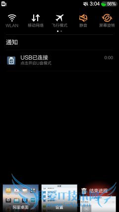 在下拉菜单上青云1 做的可是相当丰富,除了其常规通知功能及功能快捷按键外,它还将后台功能也集成到了下拉菜单中。青云1 的后台呼出并不像其它Android系统那样是靠长按或双击Home键呼,它是直接集成到了下拉菜单内,按住后台图标向上滑动是打开应用,向下则是结束进程。对于刚刚使用的用户来说的确有些不太习惯,不过在熟悉过后你会发现该功能真的很人性化。
