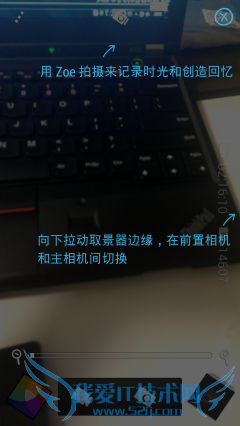 切换前、后摄像头时只需沿取景框向下滑动,但是该操作容易误操作,很多次都会被误认为点击屏幕对焦,而不是切换摄像头。
