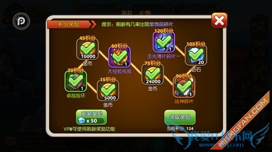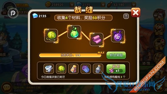 裁缝的积分奖励每天都会刷新,当积分奖励中出现紫色饰品碎片时,玩家一定要用钻去需求材料,这样你才能完整达到120积分来获取奖励,除非你相信自己的脸能够每次都出需求材料,但这基本是不可能的。