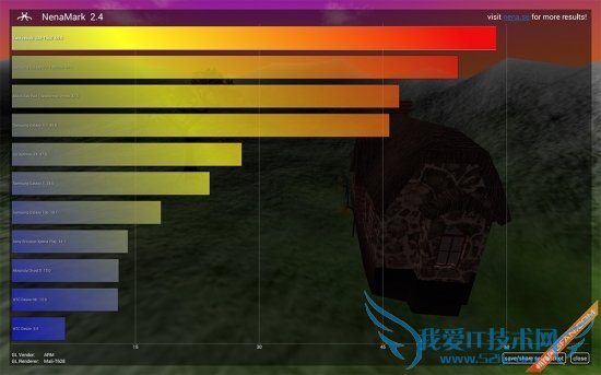 NenaMark2是一款用于Android设备的硬件加速基准测试程序,通过演示一款实时渲染的画面来对手机的图形能力进行测试,包括反射、动态阴影、曲面参数、复杂光线模式等内容,需要Android 2.0以上系统和OpenGL ES 2.0支持。