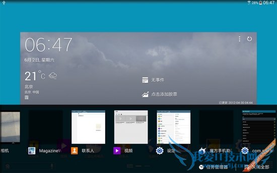 三星Tab Pro T900 沿着屏幕右侧向屏幕内滑动,即可开启多任务应用列表