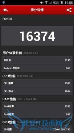 ▲ELIFE E6 mini手机安兔兔跑分16374分