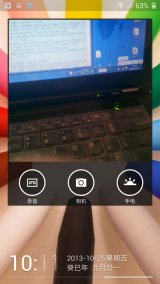 ELIFE E6 mini手机的解锁界面非常的与众不同,除了向上滑动解锁进入主界面外,还可以直接在锁屏界面左右滑动切换,在不解锁的情况下实现新闻消息的阅读、拍照、录音和打开手电筒功能,实用性极强。