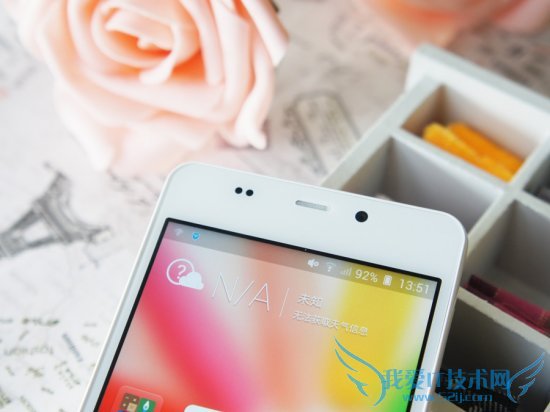 ELIFE E6 mini手机正面上方与大多数智能手机相同,都配备了光线感应器、耳机听筒和200万像素前置摄像头。