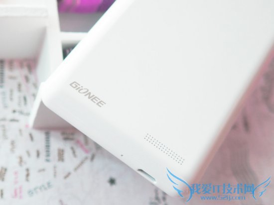 由于采用一体式机身,所以ELIFE E6 mini机身四周的按键较多,电源键、标准的3.5mm耳机接口、Micro USB插口、音量键和SIM卡插槽都分布在机身四周,不过得益于其近乎对称的按键位置设计,看起来并不繁杂和混乱。