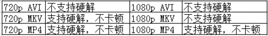 我们选择了三种不同常见制式的视频进行测试,分别为720p AVI、720p MKV、720p MP4、1080p AVI、1080p MKV、1080p MP4。