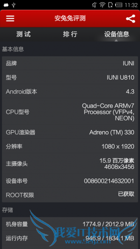 IUNI U2性能评测 配高通骁龙800处理器