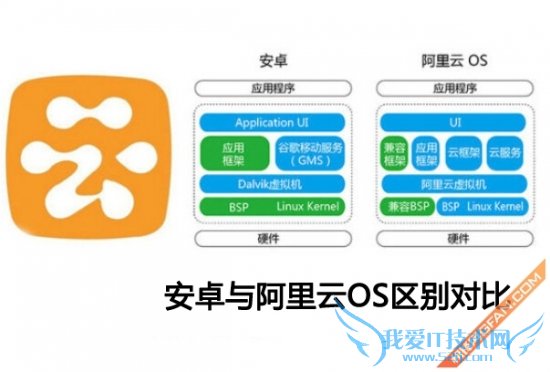 其实我们从安卓与阿里YunOS系统的区别中就能够看出,虽然安卓与阿里YunOS都是采用Linux层面,但在虚拟机方面,阿里YunOS则是采用的自家的虚拟机,而非安卓的Dalvik虚拟机,并且在基础架构层面,阿里的YunOS是采用了自己搭建的云框架,并内置了自己的云服务,这一点上面也与谷歌提供的谷歌移动服务(GMS)有很大的差别。不过由于阿里YunOS与安卓都是采用了Linux作为系统底层平台,并且阿里YunOS还支持兼容BSP,所以阿里YunOS也能够有效的兼容.apk程序。不过总体来说YunOS还是一个操作系统而非UI界面。