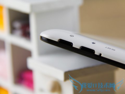 电源键、Home键、重置键、HDMI接口、micro USB接口、3.5mm耳机接口全部集成在了机身顶部,而其他边框上什么都没有。可以发现我们并没有找到传统的音量调节键,该按键被安置在了屏幕内部的虚拟按键栏内,这也是节省成本的又一方法。