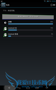七彩虹E708 Q2配备2300mAh容量电池,这对于一部平板来说稍显不足,并且在功耗方面处理的并不完美,仅四项测试就消耗了51%的电量,但如果只是上下班路上使用的话,及时充电还是足够用的。