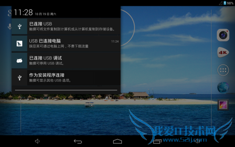 操作界面平板化,通知栏被分为两部分,左边向下滑动为通知栏、右边向下滑动为快捷设置栏。