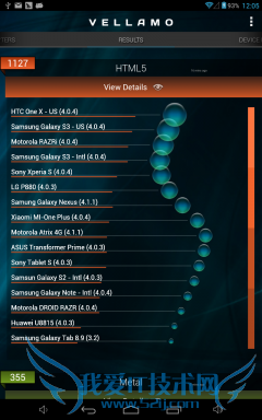 Vellamo是一个基准测试应用,它可以让你对手机浏览器的性能及稳定性进行测试,包括像Java脚本性能、渲染、联网和用户界面等。该工具的结果同样包括多个子项,但我们只取总成绩,分数越高则表明手机对浏览器的优化程度越高,网页浏览体验更好。