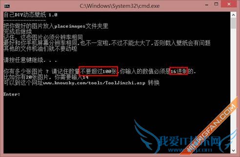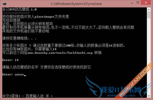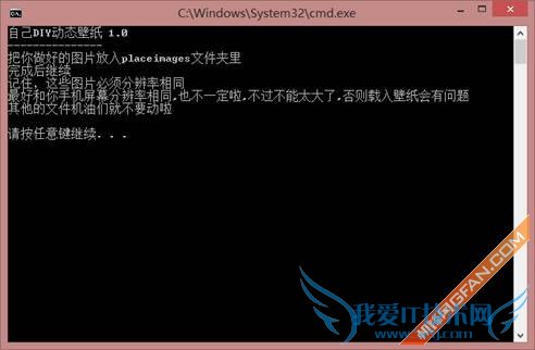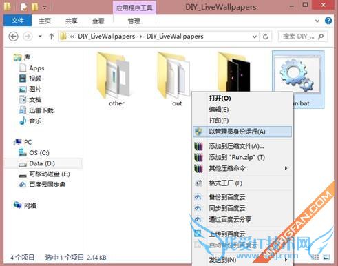 准备好GIF图后,运行DIY_LiveWallpapers文件夹下的Run.bat文件,会启动DOS运行窗口,值得一提的是,如果你是WIN7或是WIN8的用户,那么请用右键“以管理员身份运行”的方式来运行此文件,否则可能会出现错误。