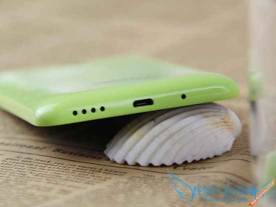 机身背部采用了一体式不可拆卸塑料背壳设计,这一点上与魅蓝note一模一样,同时在材质的选择上,魅族官方所宣传到这是与iPhone5c同样的材质,从这一点上来说,小一号的魅蓝才更应该是一款“致敬”的产品吧。