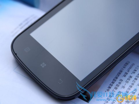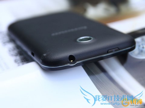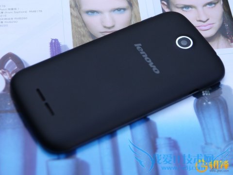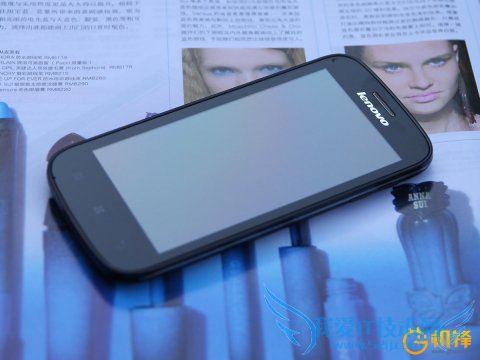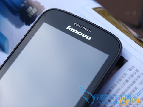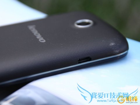 机身正面上方为听筒、感应器,很遗憾的是该机并没有配备前置摄像头。听筒下方为联想lenovo的标志字样,再无其他装饰。屏幕下方的电容按键依次为菜单键、Home键、返回键,按键触控灵敏,但是触感有些生硬,按键下方区域为麦克风。