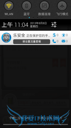 联想A760依然支持下拉通知栏快捷方式,为用户的日常操作提供了便利。通知栏和快捷设置被集成在一页,包括WLAN、蓝牙、GPS、数据连接、飞行模式以及情景模式设置等多个常用开关。