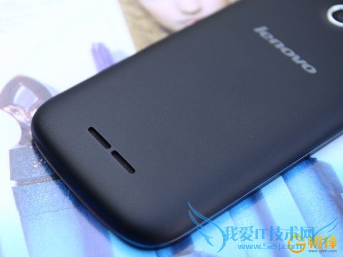 机身背面上方为一颗后置500万像素摄像头,未配备LED补光灯,拍照效果一般。机身中部为联想lenovo的标志,底部为内凹式双条扬声器。