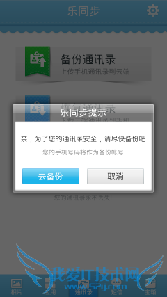 乐同步:将手机里的通讯录、短信、通话记录、照片等信息文件,安全可靠地同步存储在联想云端服务器上。