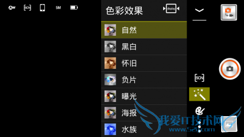 联A760配备一颗500万像素后置摄像头,但并未配备LED补光灯功能。拍照界面还是保留了惯有的风格,有四种取景模式供用户选择,另外,该机还预设多种色彩效果。但没有全景拍摄、HDR等安卓机常见功能。