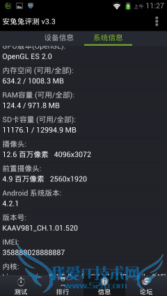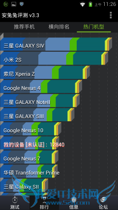 安兔兔系统评测AnTuTu Benchmark是一个专门给Android系统的手机、平板电脑硬件跑分的软件,它能一键运行完整测试项目,通过内存性能、CPU整数性能,CPU浮点性能、2D、3D绘图性能、数据库I/O、SD卡读、写速度等多项性能测试,并对手机的整体和单项硬件性能做出评分,同时上传分数并查看该设备在世界的排名。