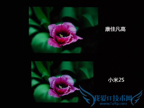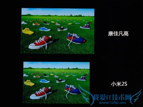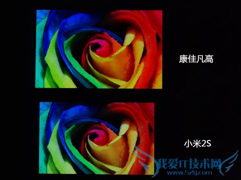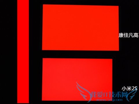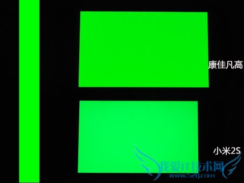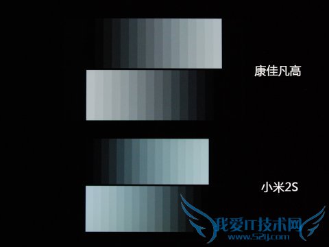 灰阶过渡实拍,可以看出两者能力相仿,只是康佳凡高V981屏幕偏暖,小米2S屏幕偏冷色调。