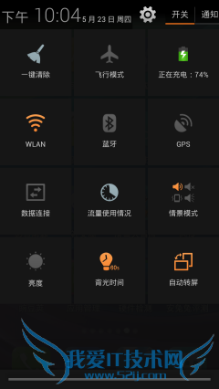 通知栏分为两部分,默认为通知页,左为快捷开关页。笔者认为完全没有必要将通知栏分为两部分,用户想要开关快捷键需要多点击一次屏幕才能进入快捷开关页。可以充分利用大屏的空间优势,将快捷开关集成在通知栏最顶部。