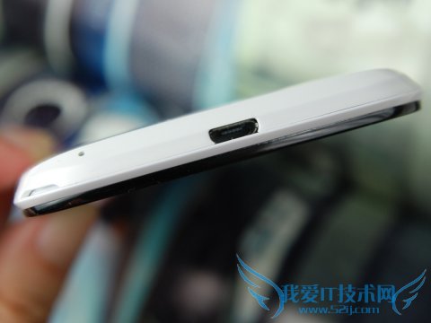 我们再来看看机身四周外设,机身顶部为3.5mm耳机接口,Micro USB接口及麦克风孔被安置在机身底部。